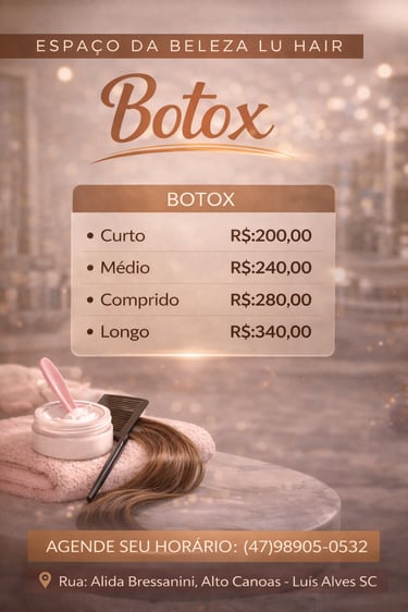 Meu cabelo nunca esteve tão saudável e brilhante! O atendimento no Espaço da Beleza Lu Hair é sempre acolhedor e profissional.